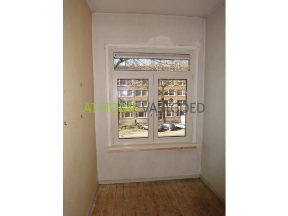 In de woonkamer ligt er een nette laminaat vloer en de rest van de woning wordt kaal opgeleverd.