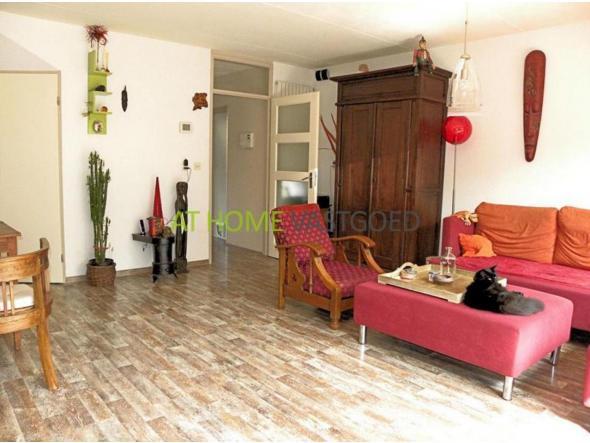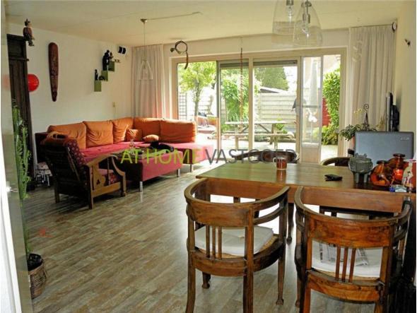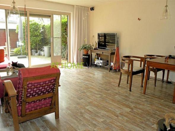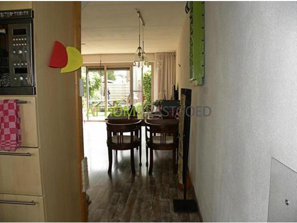 Begane grond: Ruime woonkamer van ruim 27 m2 met schuifpui, die toegang geeft tot de diepe en brede tuin (10m x 8m). Aansluitend aan de woonkamer bevindt zich de half open keuken met alles bij de hand in U-vorm en verschillende apparatuur. Van binnen heeft u ook toegang tot de garage.
