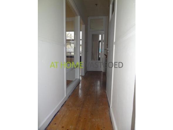 entree woning, hal welke toegang geeft tot alle vertrekken op deze verdieping. Separaat toilet. Zeer ruime en lichte woonkamer met erker. Kleine zijkamer. Afzonderlijke keuken welke toegang geeft tot het balkon.
