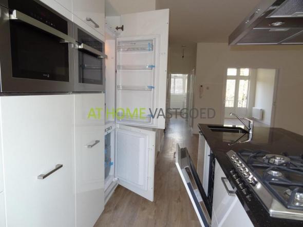 Second floor: Spacious living room with a beautiful open kitchen. The kitchen has a cooking island with a composite worktop and hob. The wall cabinets are white gloss. With appliances such as refrigerator, freezer, oven and dishwasher. In the apartment there is a beautiful laminate floor and the walls are plastered white. The bathroom is equipped with neat tiles, a shower, designer sink and a separate toilet.
