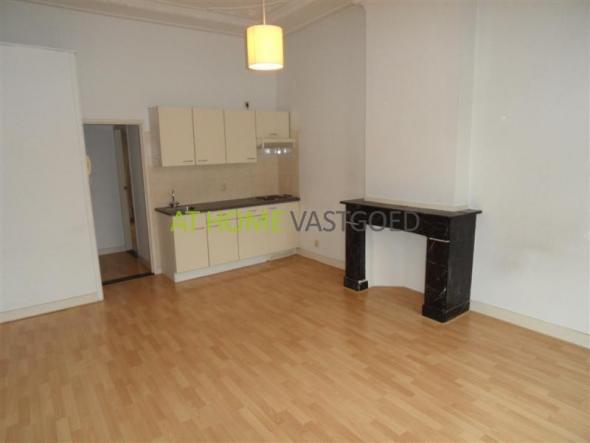 1e verdieping: entree, woonkamer met open keuken en klassiek ornamenten plafond. De keuken is voorzien van een kookplaat, koelkast en afzuigkap. Ruime slaapkamer van ca. 16.5m2 met hoog plafond, nette badkamer voorzien van een douchecabine, wastafel en toilet. Verder beschikt het appartement over een balkon aan de achterzijde van het pand.
