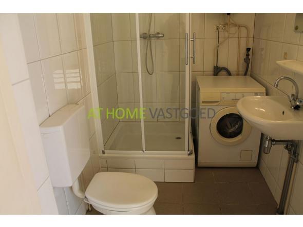De ruime slaapkamer van ca. 15m2 heeft eveneens openslaande deuren naar het balkon. Nette badkamer met een douchecabine, wastafel toilet en wasmachine.