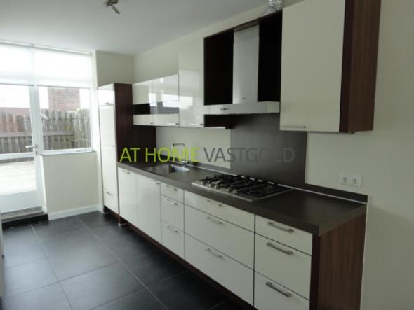 1e etage; Entree appartement, hal welke toegang geeft tot alle vertrekken. Ruime woonkamer met luxe en geheel vernieuwde open keuken. De keuken is voorzien van gasfornuis, afzuigkap, koelkast, oven, magnetron, vaatwasser en geeft toegang tot de bijkeuken het ruime eigen dakterras (ca.60m2). De bijkeuken is voorzien van aansluiting voor wasmachine. Ruime luxe badkamer met ligbad, inloopdouche en dubbelwastafel. Separaat toilet. De ouderslaapkamer (ca.13m2) geeft ook toegang geeft tot het dakterras. Gelegenheid voor het huren van parkeerplaats in de ondergrondse afsluitbare parkeerkelder onder het appartement.