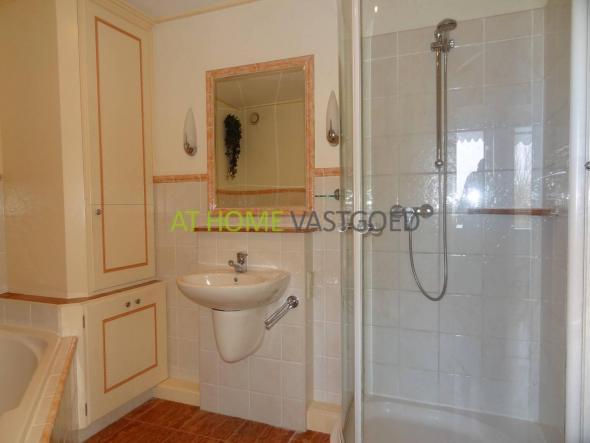verwarmde spiegel ( tegen het beslaan) en een douchecabine. De in de lange kast ( zie foto ) bevind zich de boiler en opbergruimte voor handdoeken of andere spullen. In het verlaagde plafond bevinden zich vaste inbouwspots en muziek boxen om lekker te kunnen genieten tijdens het douchen of in bad zitten. Sfeer verlichting aan de wand naast de spiegel geeft een rustgevend gevoel als u lekker wilt ontspannen.