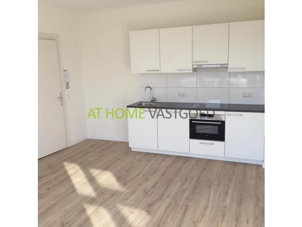 1e verdieping: entree, lichte woonkamer (ca. 22m2) met moderne open keuken, deze is voorzien van een kookplaat, afzuigkap, oven en koelkast. Nieuwe badkamer met douche, wastafel en toilet, de slaapkamer is ongeveer 6,5m2.
