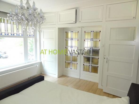 Gezamenlijke trapopgang. naar de 1e etage. Binnenkomst in hal met toegang naar alle vertrekken. Een ruime en lichte woonkamer welke ook via en-suite deuren toegang bied naar de slaapkamer welke weer voorzien is van diverse inbouwkasten. De keuken is gelegen aan de achterzijde en is voorzien van een kookplaat, oven, koelkast, wasmachine en droger. De toilet is gescheiden van de badkamer. De badkamer is voorzien van een wastafelmeubel en een ligbad. Dit appartement word verhuurd voor een all-in prijs van € 1050,00 per maand.