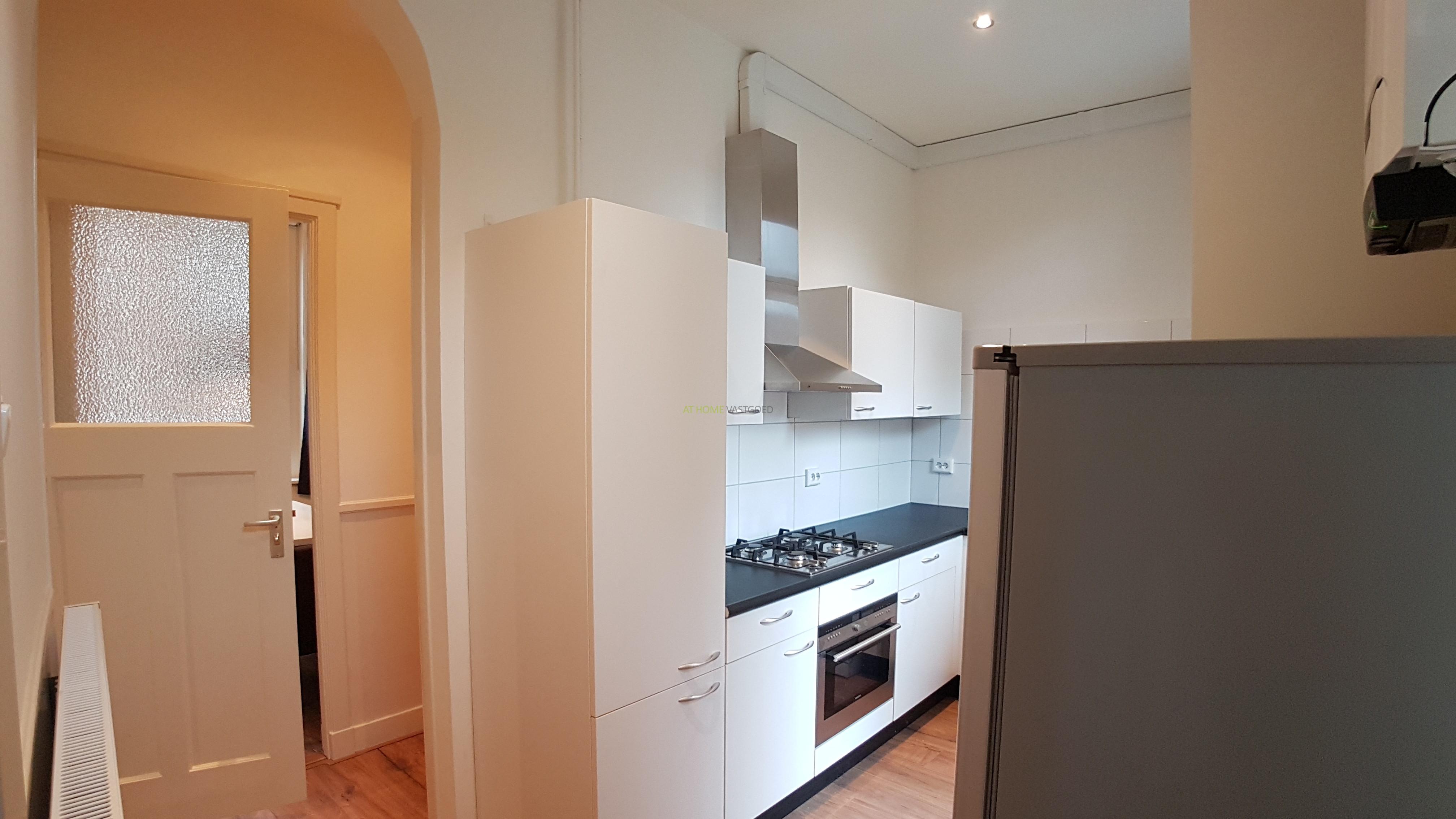 Entree appartement, fraaie ruime keuken voorzien van een gaskookplaat, afzuigkap, oven, magnetron en koel- vries combinatie. Via de keuken is het op het oosten gelegen balkon te bereiken. Hal met toegang naar de prachtige badkamer en ruime woonkamer en eetkamer/slaapkamer. De badkamer is voorzien van een douchecabine, wastafel met meubel, wasmachine, droger en toilet. Zeer lichte en ruime woonkamer met erker en apart eetgedeelte. De slaapkamer is voorzien van een 2 persoonsbed, nachtkastje en kledingkast.