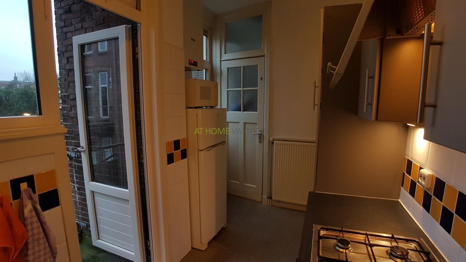 Entree appartement, fraaie keuken voorzien van gaskookplaat, afzuigkap, oven, magnetron en koel- vries combinatie. Via de keuken is het op het oosten gelegen balkon te bereiken. Hal met toegang naar de prachtige badkamer en zeer ruime woonkamer. De badkamer is uitgerust met een heerlijk ligbad, aparte douche, wastafel, wasmachine en toilet. Zeer lichte en zeer ruime woonkamer met erker en aansluitend de eetkamer. De slaapkamer is voorzien van een bed, nachtkastje en kledingkast en is bereikbaar via de woonkamer.
