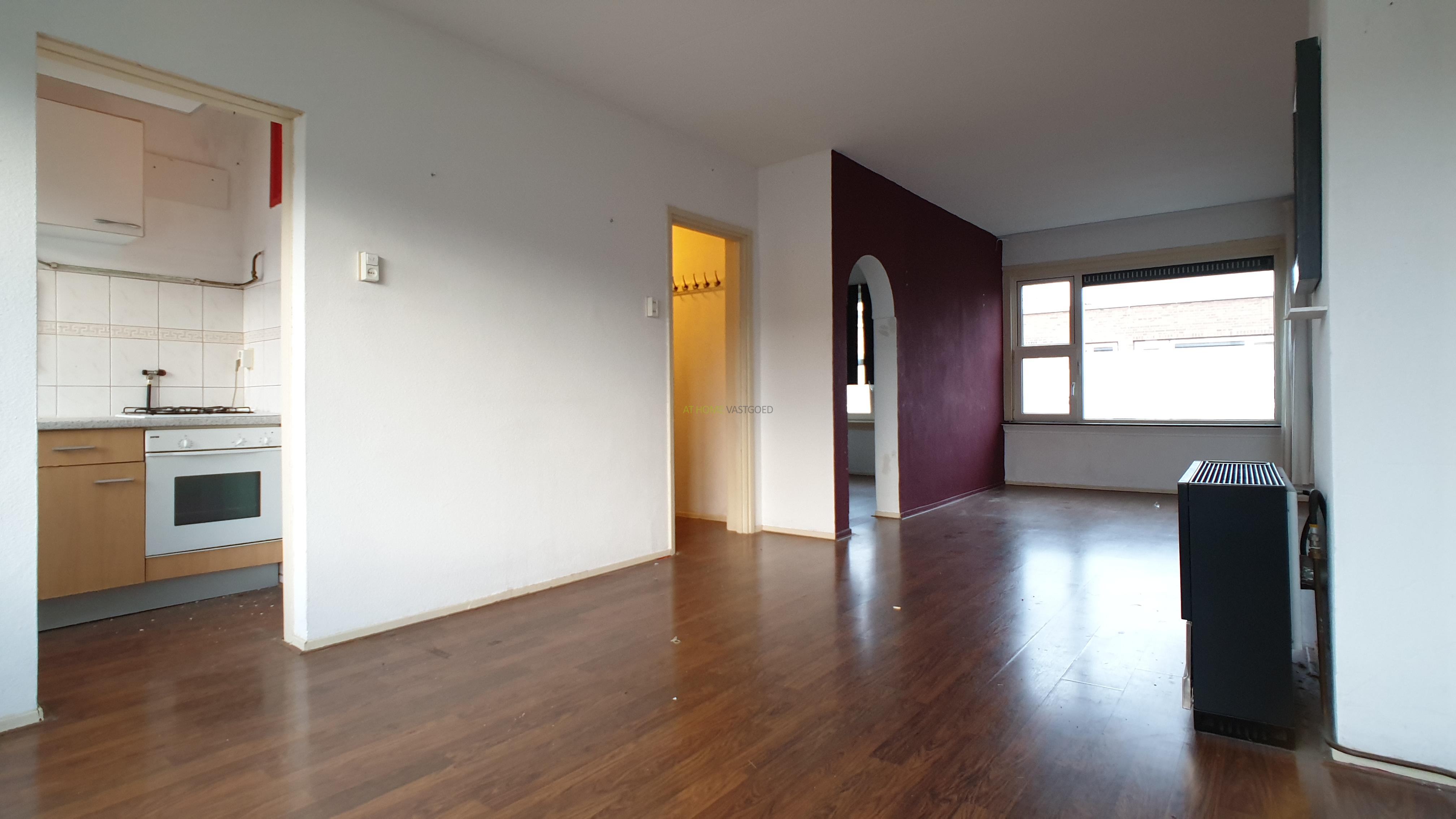 Entree appartement, hal, badkamer met douche, wastafel en toilet. Zeer ruime woonkamer met grote raampartijen wat veel lichtinval creëert, de woonkamer geeft tevens toegang tot het balkon. Half open keuken welke is voorzien van een gaskookplaat en oven. De slaapkamer is gelegen aan de voorzijde.