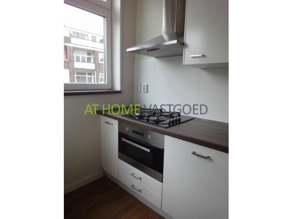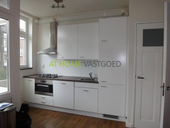 Entree, hal met separaat toilet, ruime lichte woonkamer met open keuken. De keuken is uitgerust met een gaskookplaat, afzuigkap, oven en koel-vriescombinatie. Trap naar de 3e verdieping.