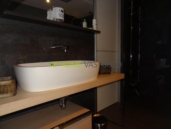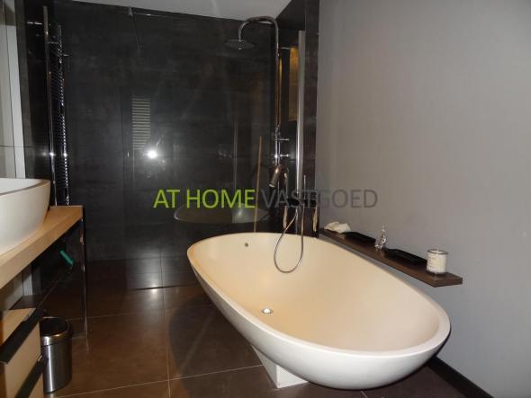Via de slaapkamer heeft u toegang tot de fantastische badkamer, deze is voorzien van een heerlijk design ligbad, inloopdouche, grote wastafel met meubel, design radiator en is, net als het toilet, afgewerkt met mooi natuursteen.
