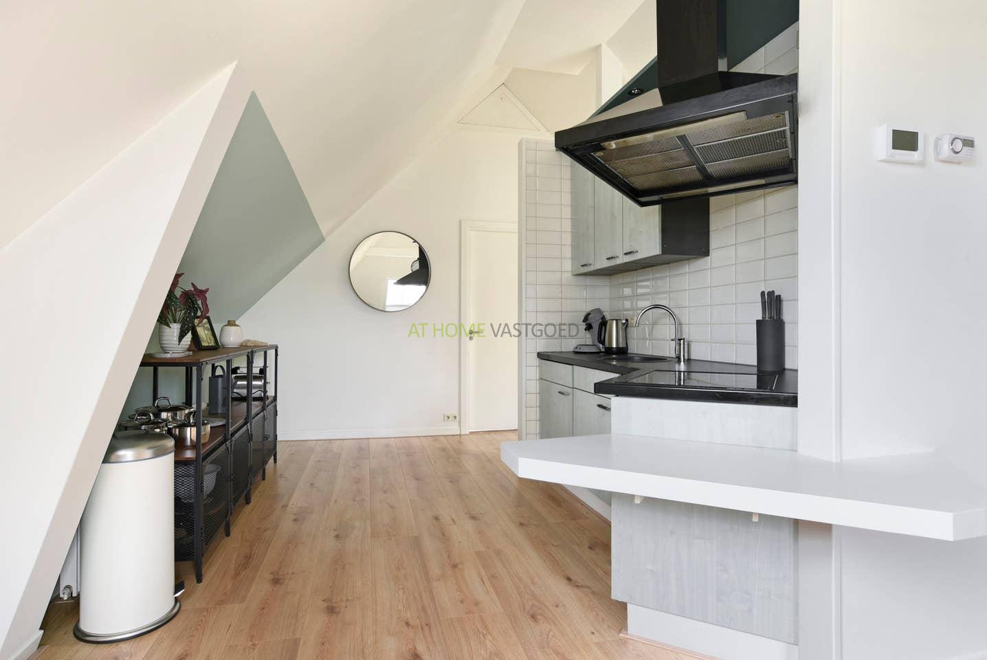 Entree appartement, hal, separaat toilet, slaapkamer met aangrenzend de nette badkamer welke is voorzien van ligbad, douchecabine, wastafel en design radiator. Ruime woonkamer met open keuken en nette laminaat vloer. De keuken is voorzien van koelkast, oven, keramische kookplaat en afzuigkap. Het appartement is voorzien van dubbelglas en centrale verwarming.