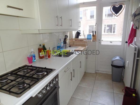 entree, hal met meterkast, apart toilet met fontein en aparte doucheruimte met wasmachine aansluiting. Nette keuken met 4-pits gasstel, oven, tafelmodel inbouwkoelkast en toegang tot het balkon. De lichte woonkamer is voorzien van twee vaste kasten en geeft toegang door middel van schuifdeuren tot de eerste slaapkamer. Vanuit de hal heeft u toegang tot slaapkamer 2 met vaste kast waar vanuit u ook toegang heeft tot het balkon.