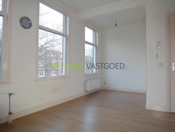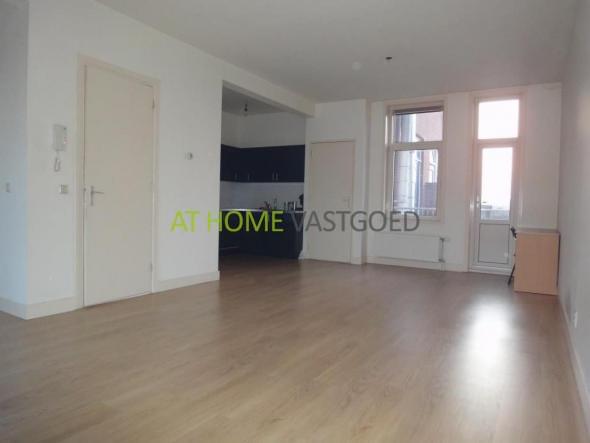 2e etage: entree, ruime woonkamer van ca. 40 m2 met veel lichtinval en moderne open keuken voorzien van gaskookplaat, afzuigkap en koelkast. De woonkamer geeft tevens toegang tot het balkon gelegen op het westen.