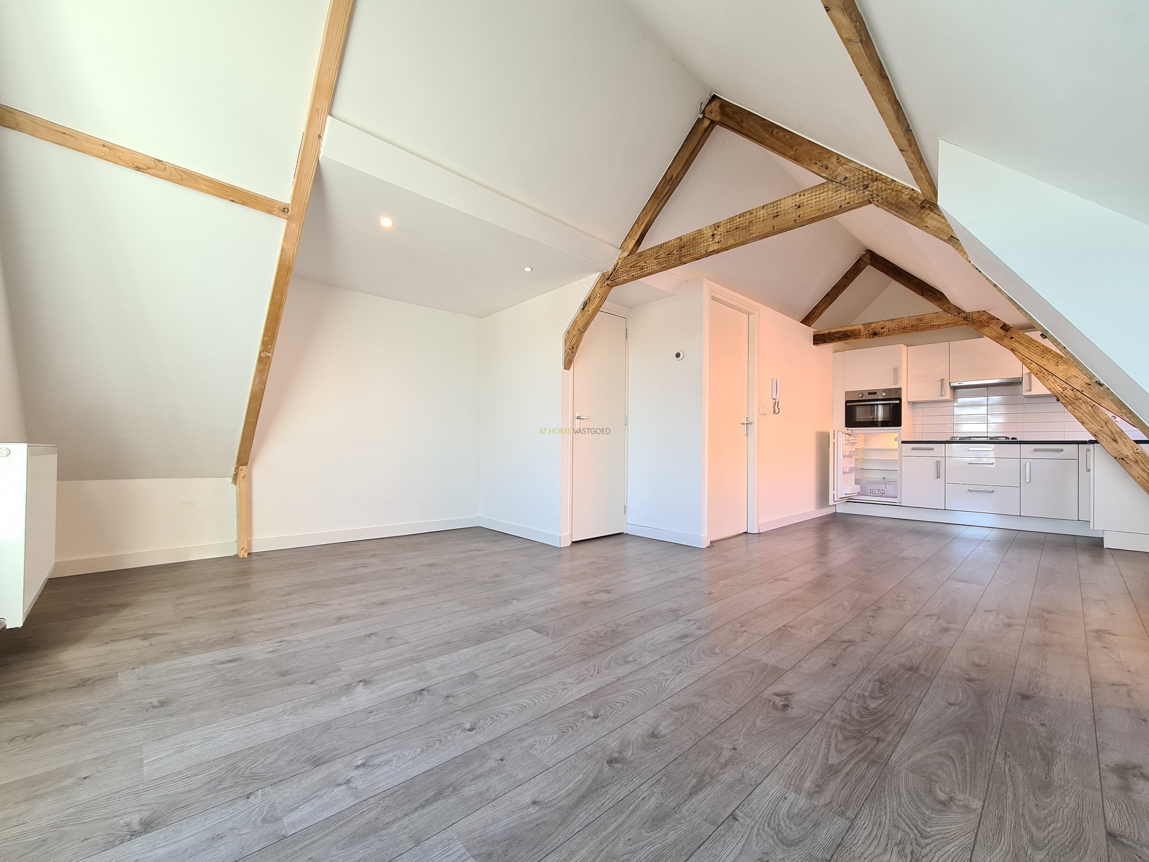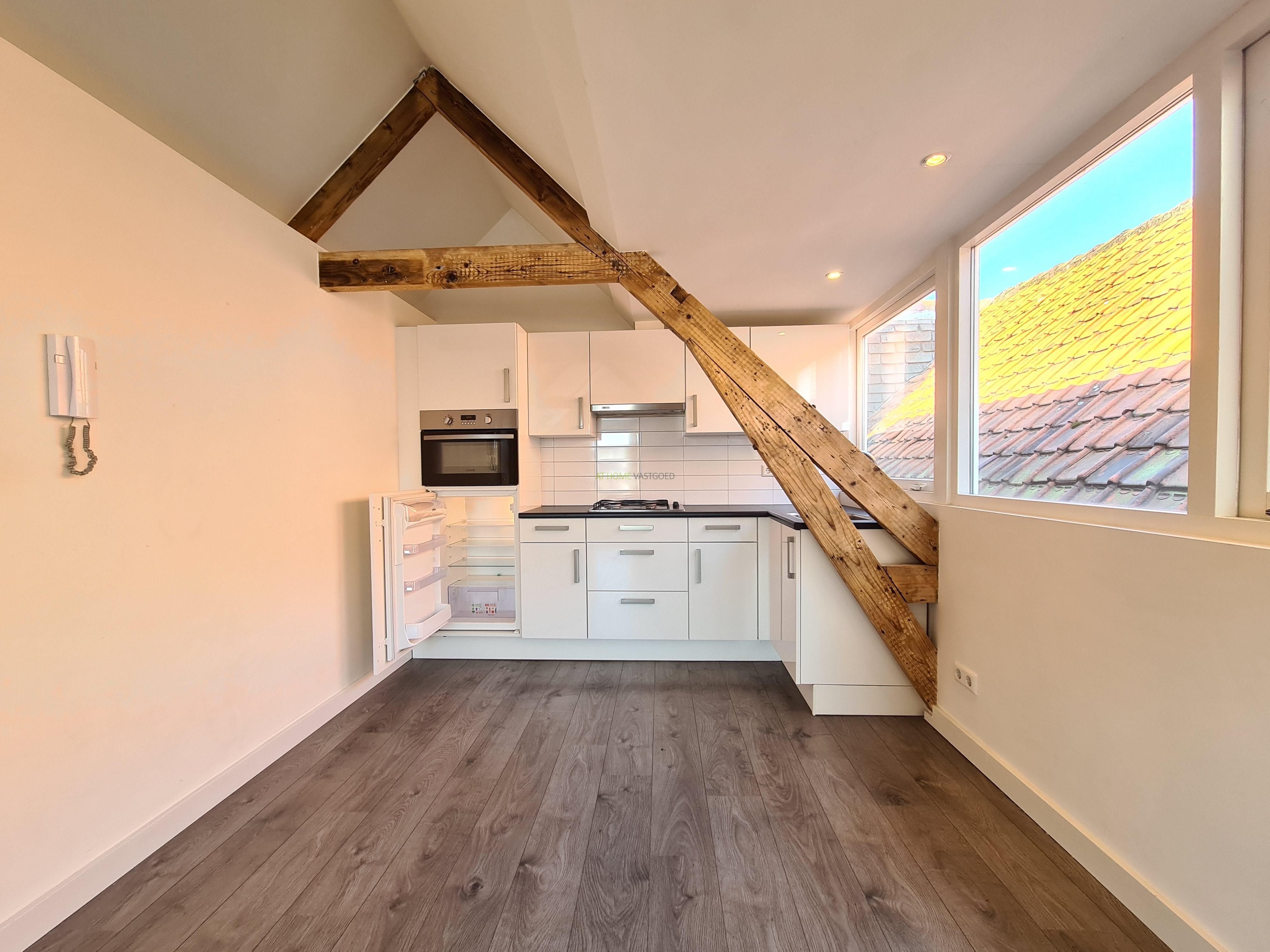 Entree appartement, hal, ruime lichte woonkamer met moderne open keuken. De keuken is voorzien van een koelkast, kookplaat, afzuigkap en oven. Nette badkamer met douche en wastafel, separaat toilet. Het appartement heeft 1 ruime slaapkamer.