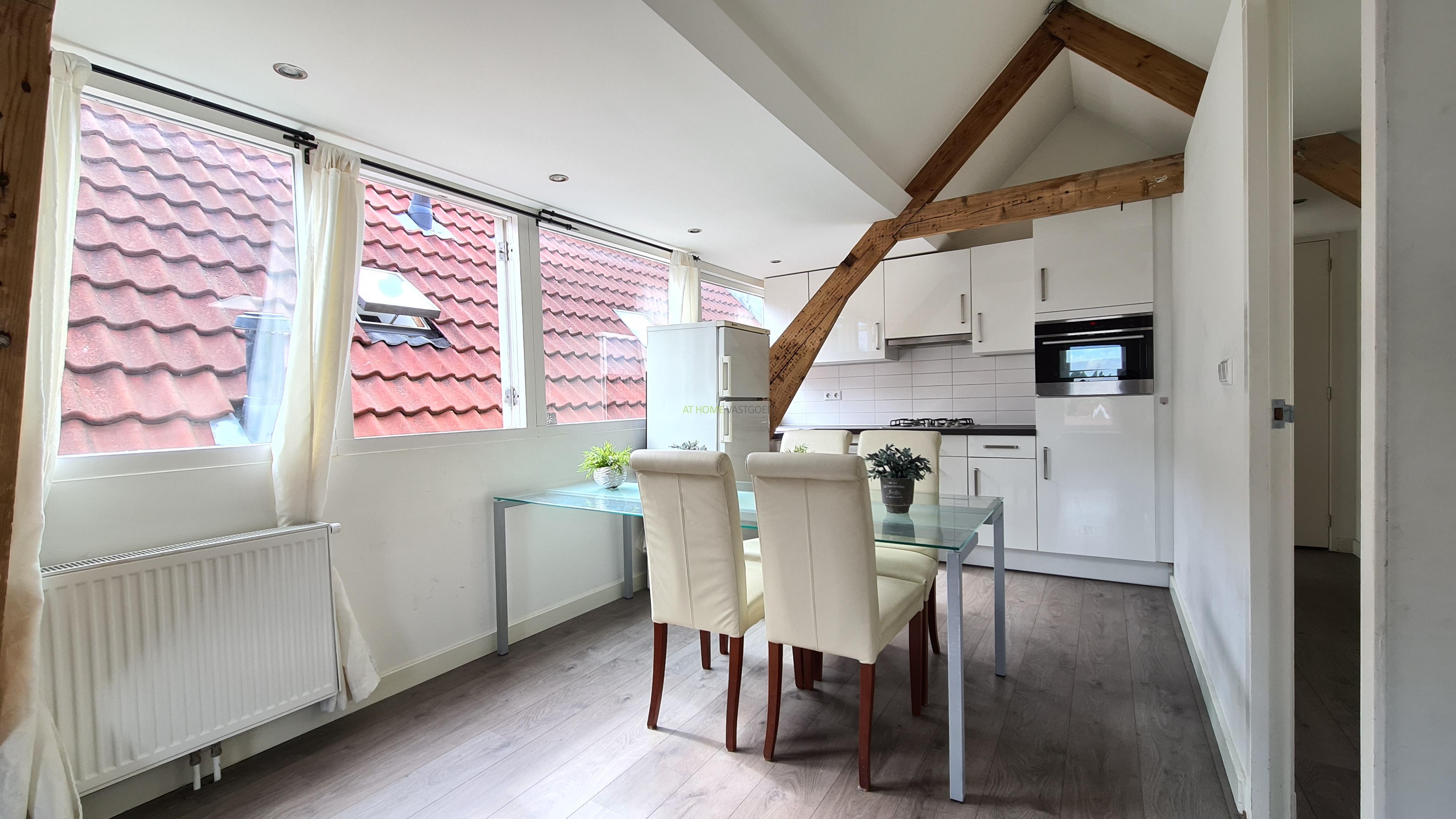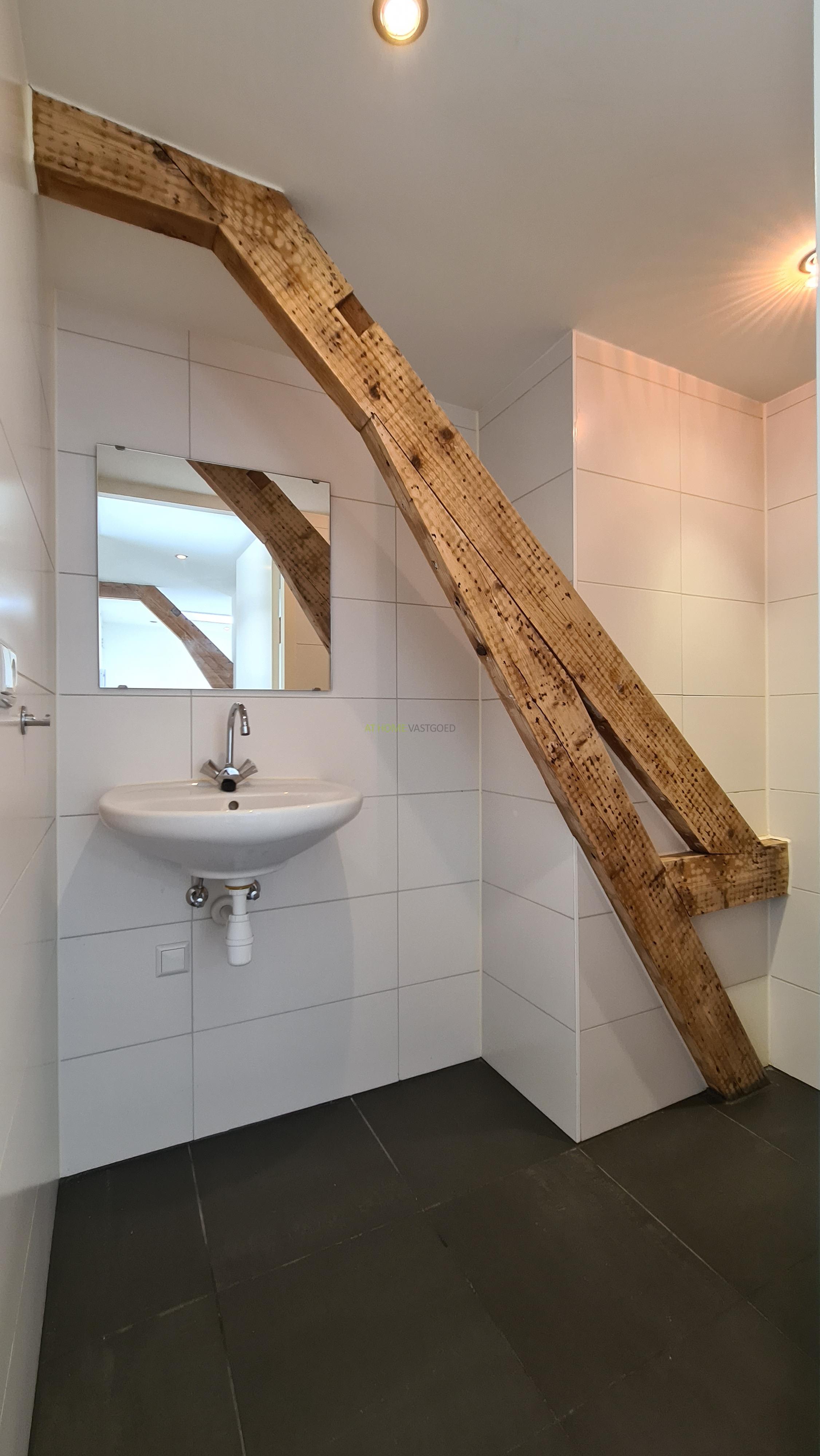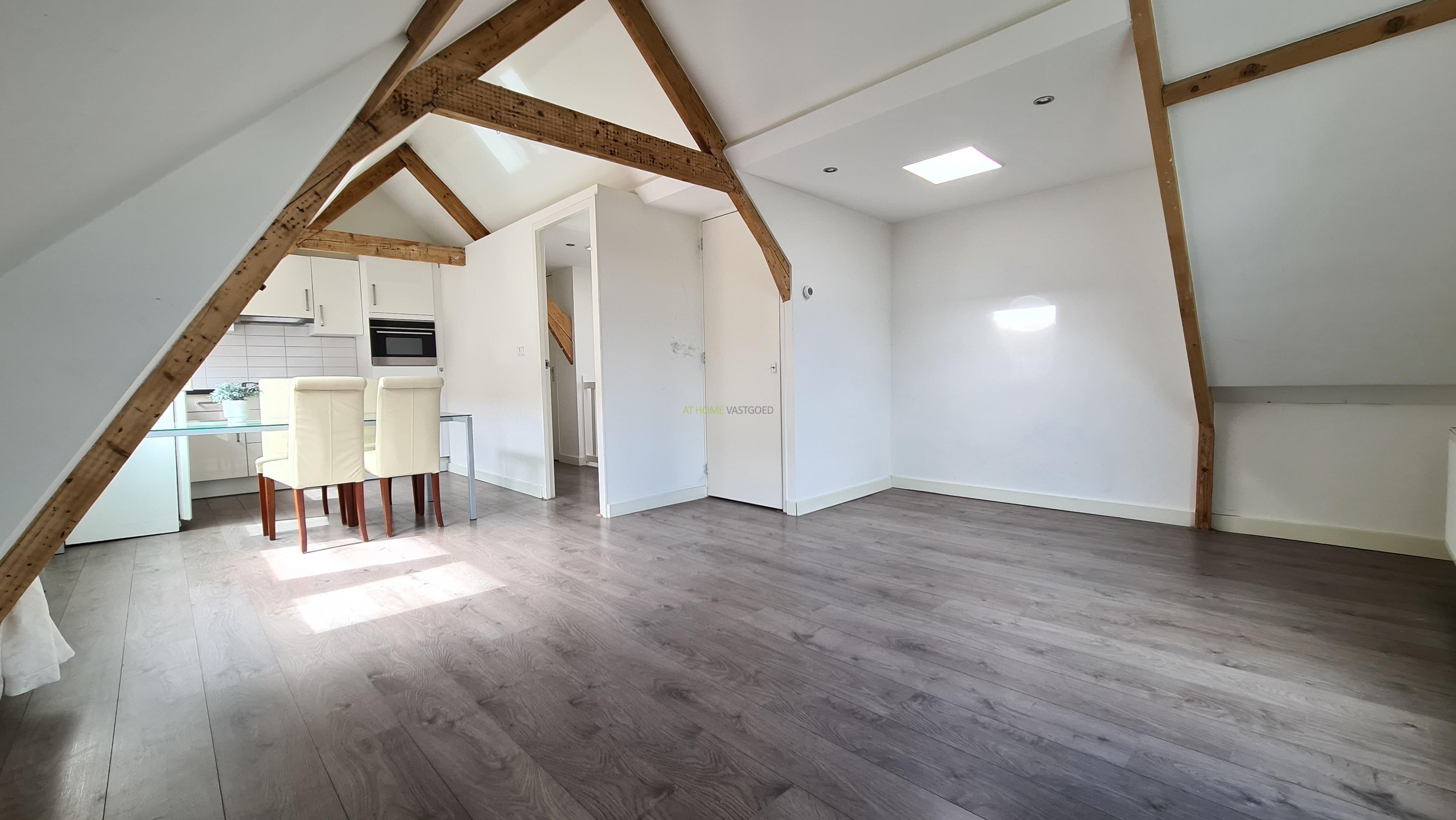 Ruime en lichte woonkamer met open keuken, deze is voorzien van een koelkast, kookplaat, afzuigkap en combi-magnetron. Nette badkamer met douche, wastafel en design radiator. Ruime slaapkamer ook met charmante houten balken.