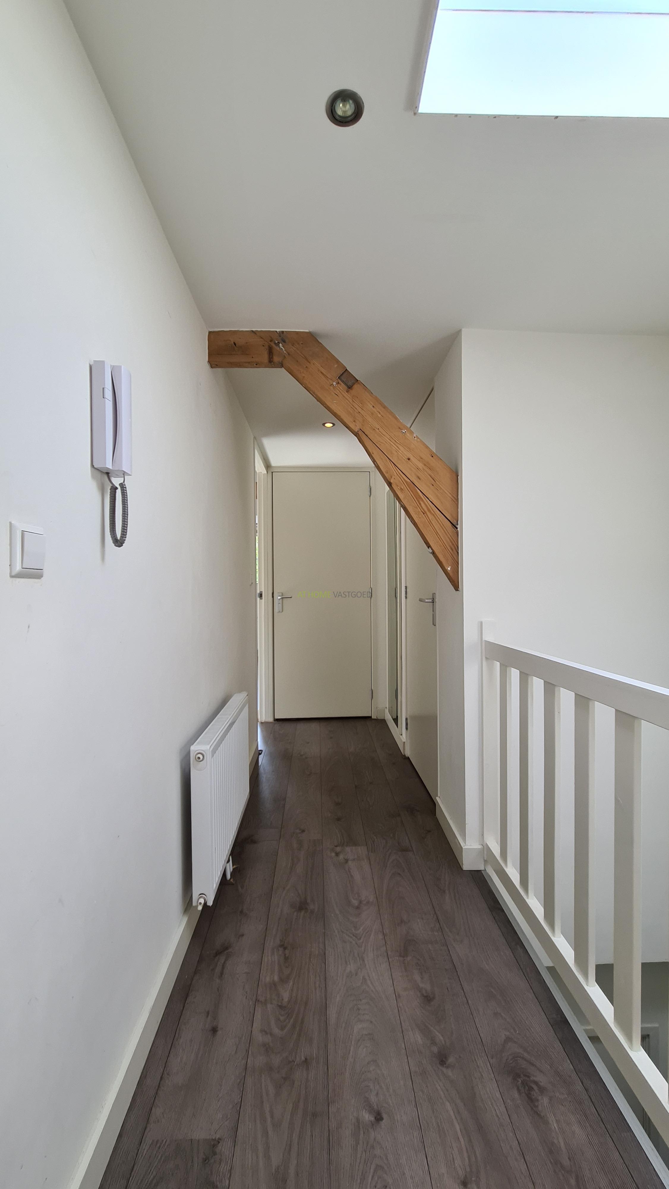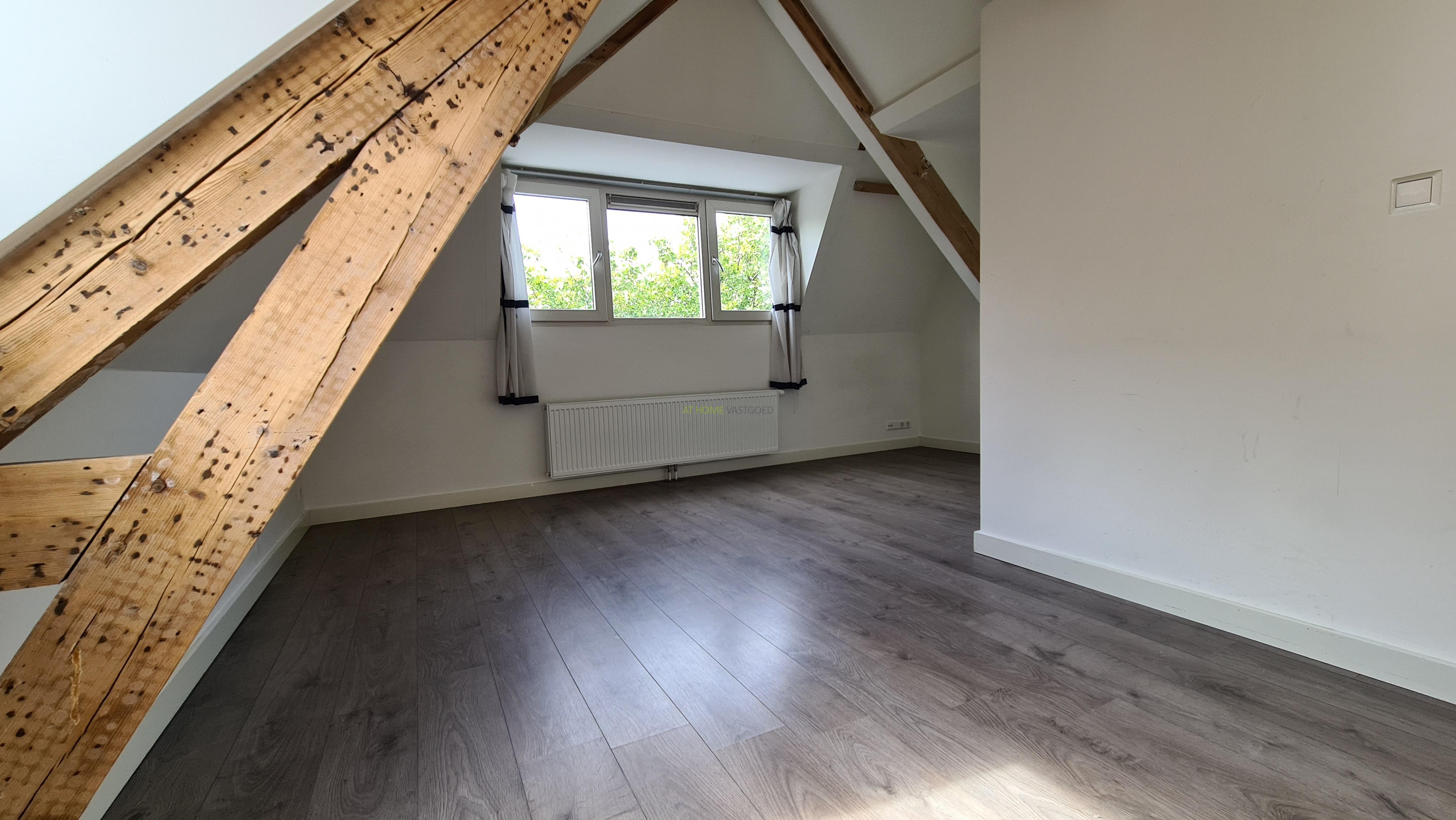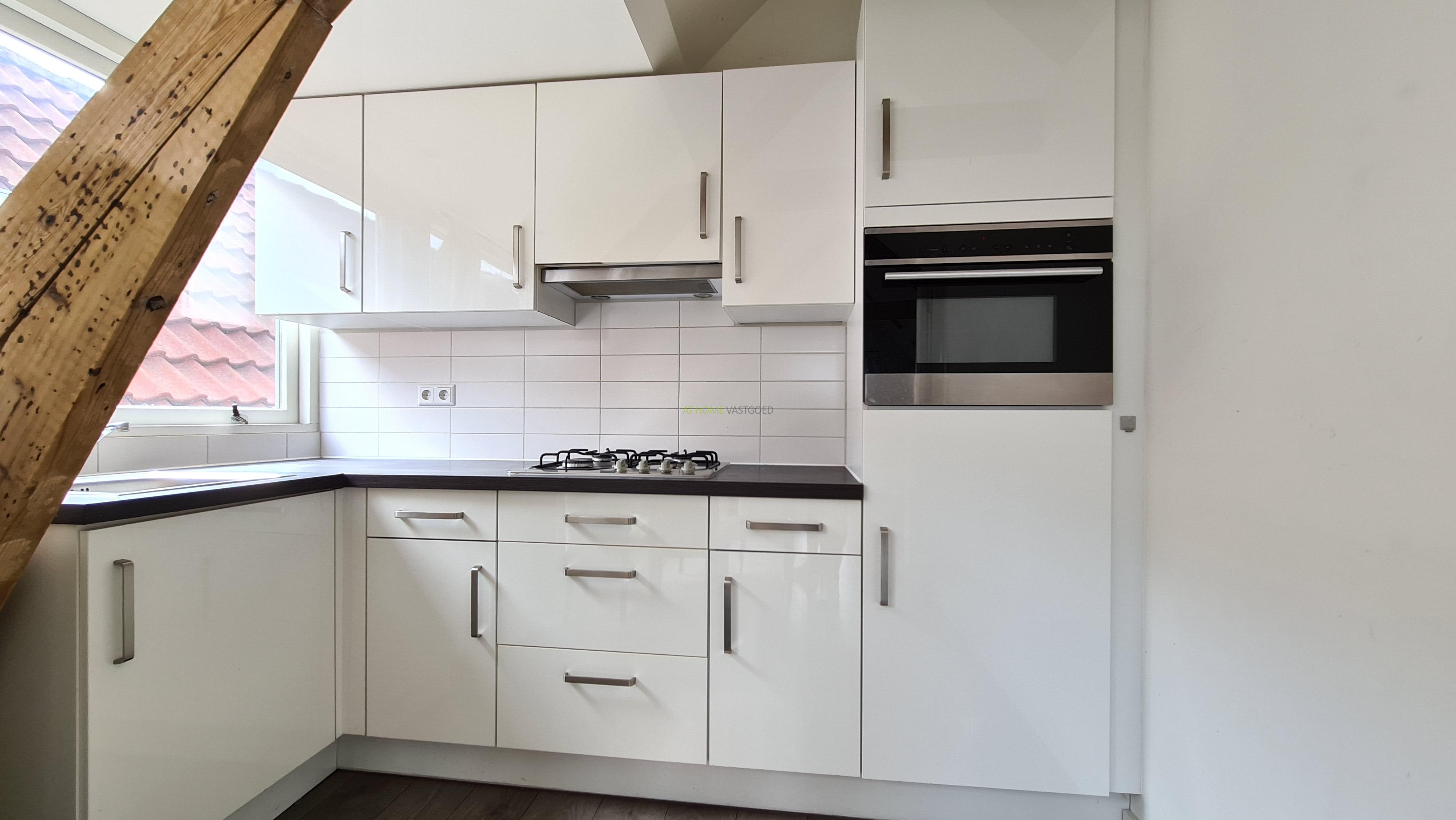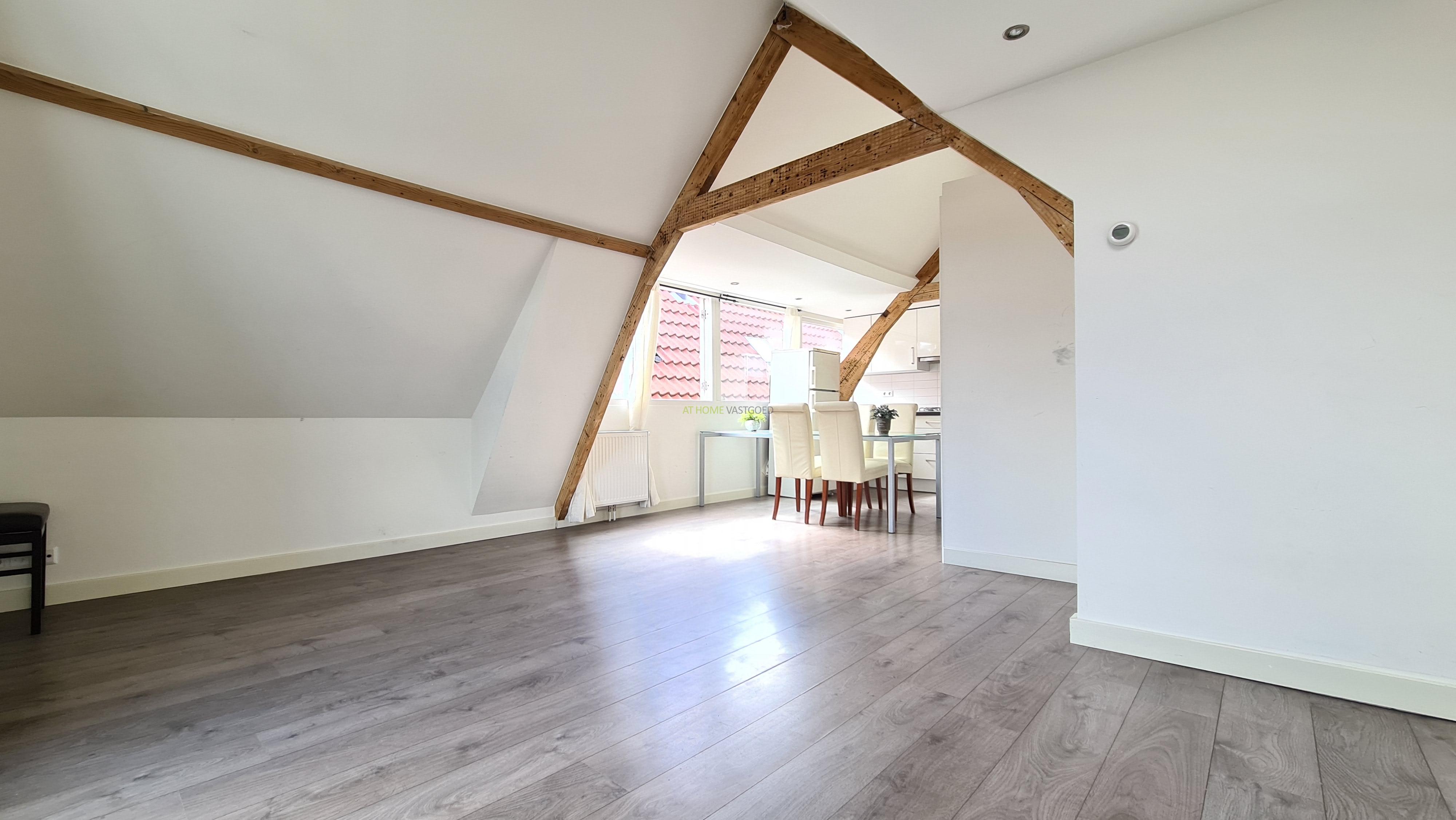 Ruime en lichte woonkamer met open keuken, deze is voorzien van een koelkast, kookplaat, afzuigkap en combi-magnetron. Nette badkamer met douche, wastafel en design radiator. Ruime slaapkamer ook met charmante houten balken.