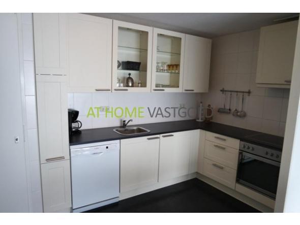Grote woonkamer met veel lichtinval. De luxe open keuken is voorzien van alle apparatuur,achter de keuken bevindt zich een bijkeuken .