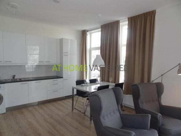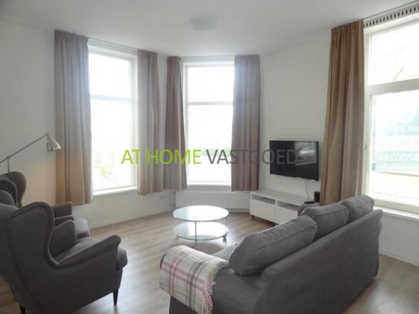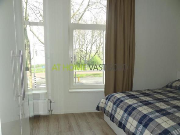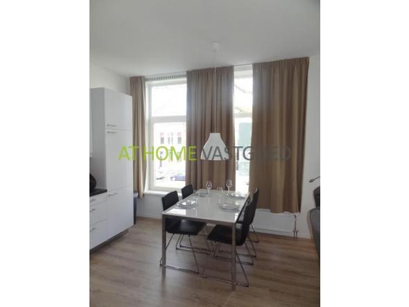 Indeling: Gezamenlijke entree, trap naar de 1e verdieping, hal, toilet, gezellige woonkamer met veel lichtinval door de grote ramen, open keuken met vaatwasser, gaskookplaat, afzuigkap, koelkast / vriezer, wasmachine / droger combinatie, oven en magnetron. Slaapkamer voorzijde voorzien van kast en tweepersoons bed. Grote en moderne badkamer met inloopdouche en wastafel.