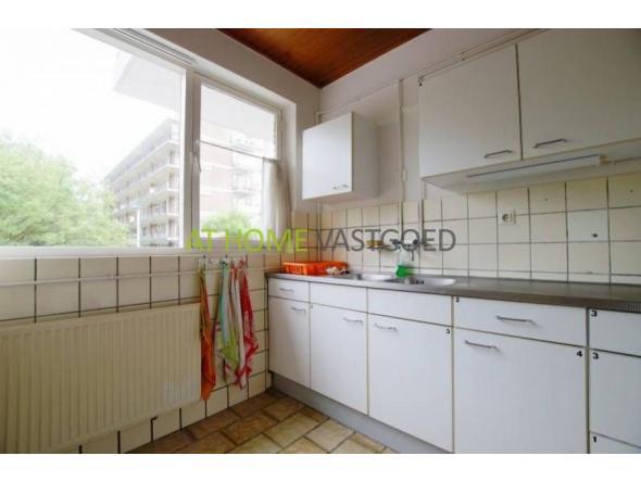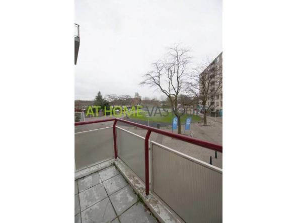 Ruime lichte woonkamer aan de voorzijde (27m2) met toegang tot het balkon. Aparte keuken met koel-vriescombinatie, gaskookplaat, combimagnetron en geïnstalleerde wasmachine. Toilet met wastafel.