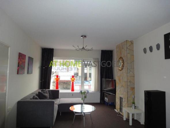 Vanuit de hal komt u in de woonkamer die voorzien is van: een keurig onderhouden tapijt vloer, lounge bankstel, flat screen tv van het merk ( Sony ) er is ook een eet tafel met stoelen aanwezig.