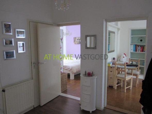 Entree, trap naar de 2e etage. Hal met aparte bergruimte voorzien van wasmachine. Separaat toilet. Lichte woonkamer aan de voorzijde. Slaapkamer aan de voorzijde. Aan de achterzijde bevindt zich de master bedroom met aangrenzende badkamer. Deze is voorzien van douche en wastafel. Aparte keuken voorzien van alle benodigde inbouwapparatuur. Vanuit de keuken heeft u toegang tot het balkon.