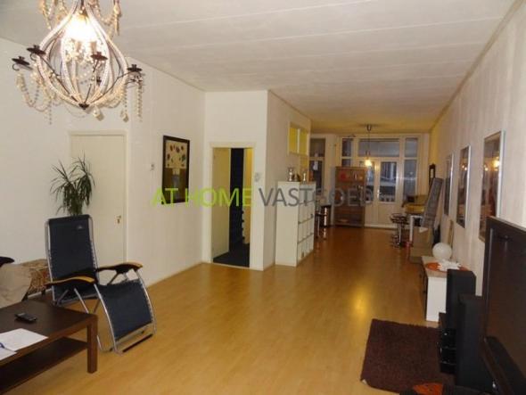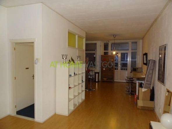 entree op de 2e etage. Klein hal met trap naar de 3e etage en ingang naar de ruime woonkamer. De woonkamer heeft een afmeting van ca. 40m2 en aan de achterzijde ligt de open keuken. Deze is voorzien van een 5-pits kookplaat met oven, een afzuigkap en een koel/vriescombinatie. Het balkon is aan de achterzijde gelegen. OP de 3e etage liggen 2 slaapkamers. Een aan de voorzijde en een aan de achterzijde. De badkamer is in het midden gelegen en is voorzien van een wastafel en een douchecabine. Het appartement is voorzien van dubbele beglazing en word verwarmd.d.m.v. centrale verwarming.
