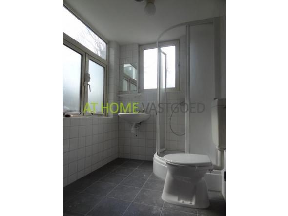 De ruime en lichte slaapkamer aan de voorzijde geeft toegang naar een klein balkon. Nette badkamer met douchecabine, wastafel en toilet.