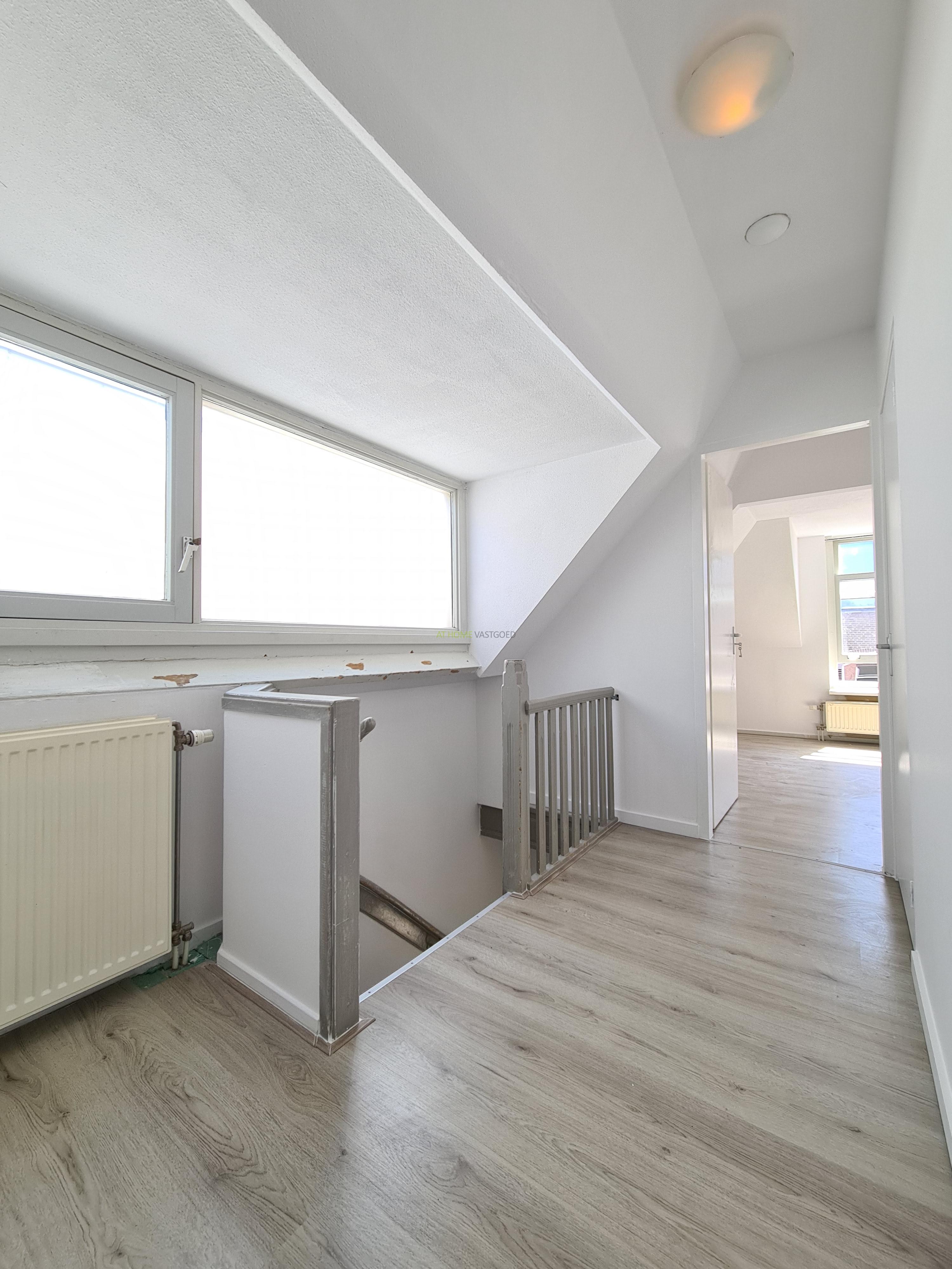 Overloop, 2 ruime slaapkamers, zeer nette volledig betegelde badkamer voorzien van douche en dubbele wastafel met spiegel en meubel en de wasmachine aansluiting. Het 2e toilet is apart gelegen