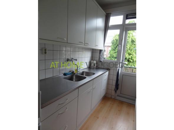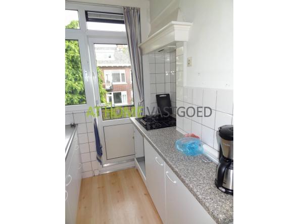 Entree op de 1e etage. Nette gestoffeerde opgang naar de 2e etage. Hal met toegang naar alle vertrekken.De ruime woonkamer van 3,6 x 10,3m. heeft aan de achterzijde een klein balkon. De keuken is voorzien van een net keukenblok en heeft een gaskookplaat en afzuigkap. De slaapkamer aan de achterzijde is 2,7 x 3,8m. De slaapkamer aan de voorzijde heeft een afmeting van 3,56 x 4,55m. Toilet en douche zijn gescheiden.De douche heeft een afmeting van 1,5 x 1m.