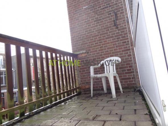 1e etage: overloop, nette badkamer met douche, wastafel en radiator, apart toilet. Entree studio, ruime en lichte woonkamer met toegang tot de keuken en het balkon gelegen aan de achterzijde. Het balkon ligt op het Noordoosten. Aan de voorzijde bevindt zich de lichte kamer welke gemakkelijk als slaapkamer is te gebruiken.