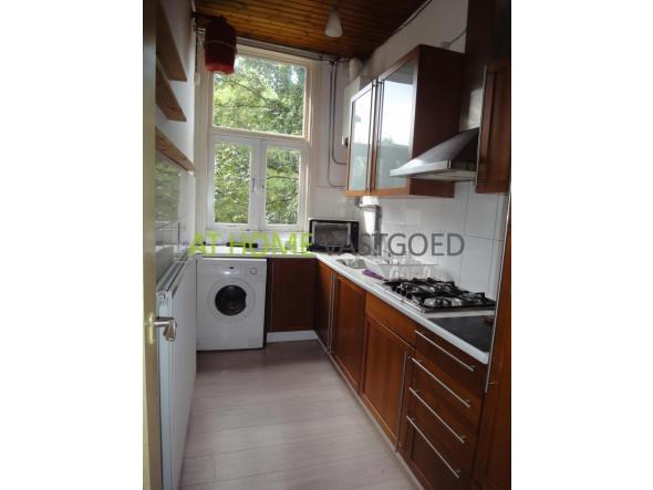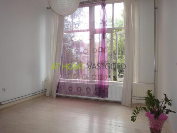 BG: gezamenlijke entree, entree appartement, vaste trap naar de eerste etage. Ruime hal welke toegang geeft tot alle vertrekken. Nette keuken met koelkast, gasfornuis, afzuigkap en wasmachine. Badkamer met douche, separaat toilet. De ruime slaapkamer met wastafel is gelegen aan de achterzijde van de woning. Zeer ruime en lichte L-vormige woonkamer met inbouwkast.