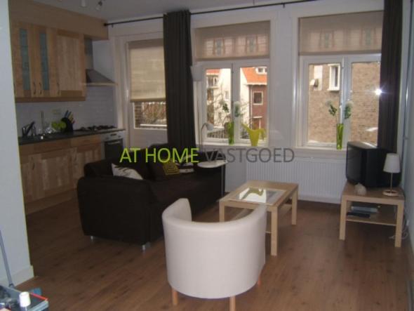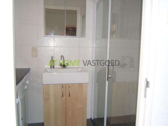 1e etage: overloop, apart toilet, lichte woonkamer met open keuken en toegang tot het balkon aan de de achterzijde. De keuken is voorzien van koelkast/ vriezer, oven, gas kookplaat en afzuigkap. Slaapkamer met toegang tot de strakke badkamer met douchecabine, wastafel meubel, wasmachine en droger.