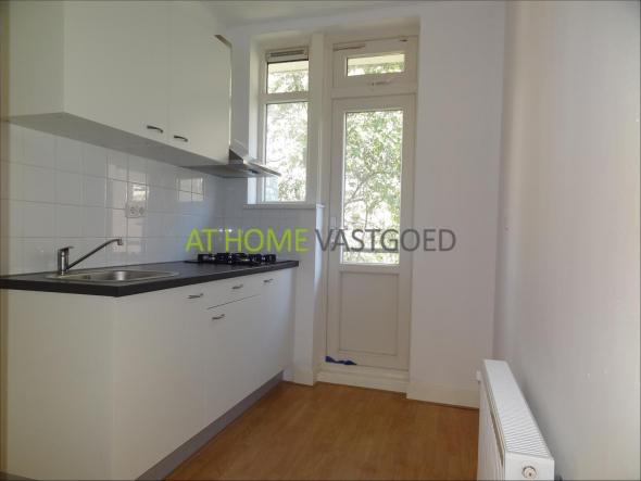 1e verdieping: entree, hal met separaat toilet, nieuwe en nette keuken voorzien van gaskookplaat en afzuigkap. Ruime eerste slaapkamer welke toegang geeft tot het balkon gelegen aan de achterzijde. Ruime woonkamer met grote raampartijen waardoor deze veel lichtinval geniet.