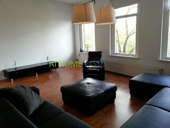 Het appartement is voorzien van een ruime slaapkamer, ruime badkamer met ligbad en wastafels, zeer ruime woonkamer (60m2) met veel lichtinval. Tevens voorzien van degelijke nieuwe parketvloeren, rolgordijnen, hoge plafonds met trendy verlichting, CV en videofoon. Open leef-keuken met alle opties en apparatuur. Het appartement is in absolute nieuw staat.