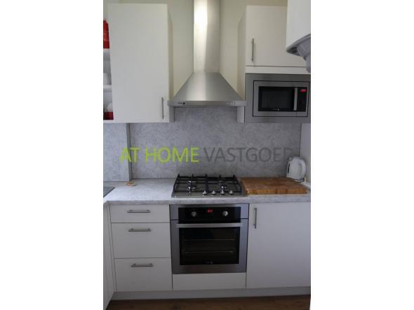 Vanuit de hal komt u in de woonkamer die voorzien van een laminaat vloer en gordijnen. Slaapkamer is voorzien van gordijnen en een laminaatvloer met deur voor toegang naar het balkon. Tevens komt u vanuit de hal in de keuken voorzien van: 4-pits kookplaat, combi oven, oven en afzuigkap. De badkamer voorzien van, wasfontein , bad en wc.