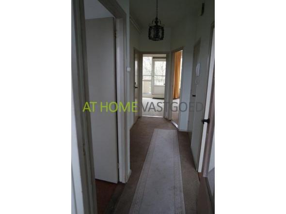 Entree met tochtportaal, toilet, badkamer met douche en wastafel. Woonkamer, zijkamer, hoofdslaapkamer met wastafel, 3 inpandige bergkasten, balkon, keuken.