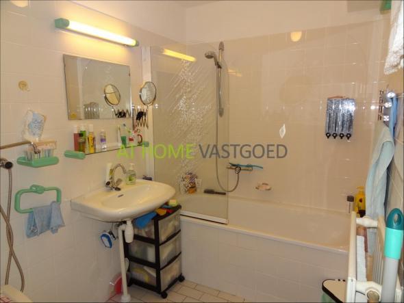 Licht betegelde badkamer met heerlijk ligbad, aparte douche en wastafel. Inpandige berging met wasmachine .