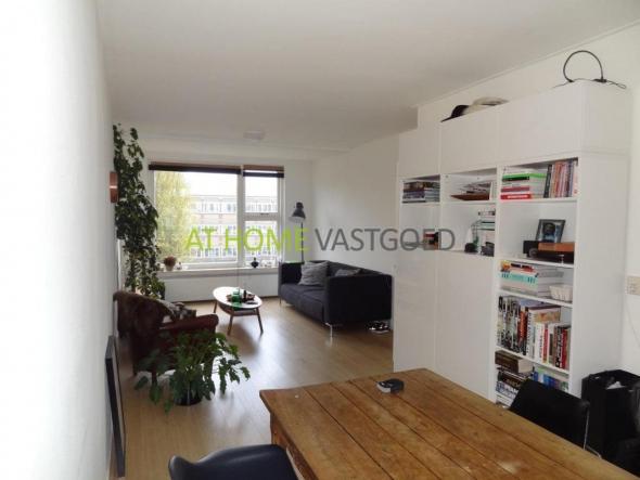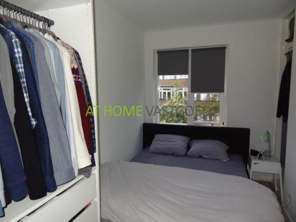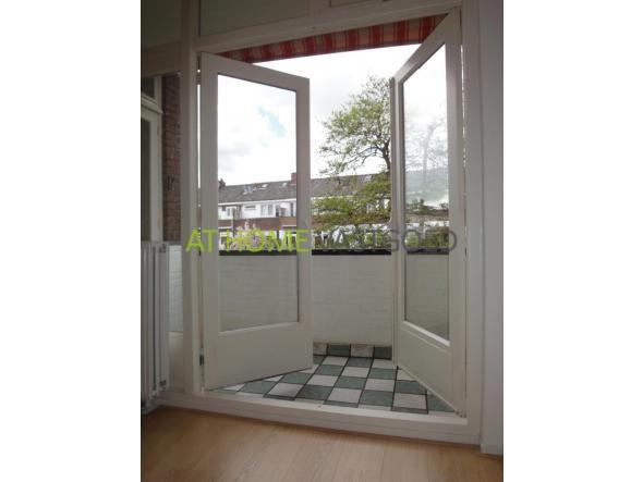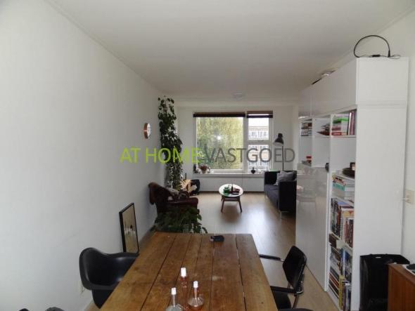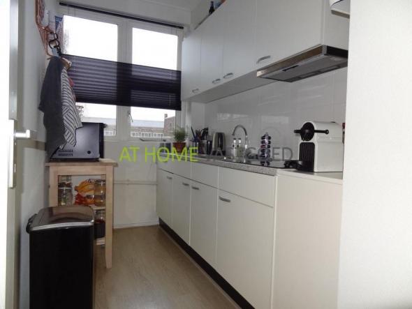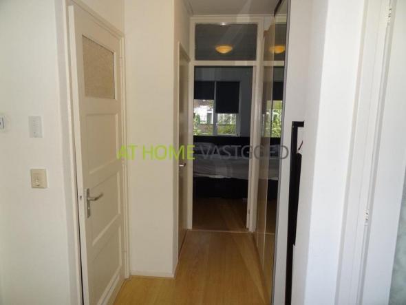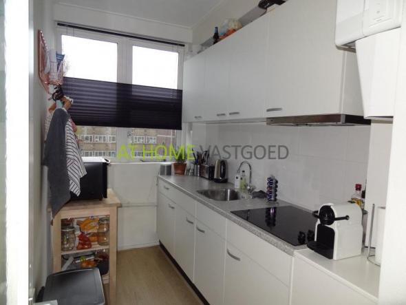 2e etage: entree, hal welke toegang geeft tot alle vertrekken. Mooie (afzonderlijke) keuken met koelkast, keramische kookplaat, afzuigkap en aansluiting voor de wasmachine. De riante en lichte woonkamer met grote raampartijen geeft via openslaande deuren toegang tot het balkon aan de achterzijde. Nette badkamer met douche en wastafel, separaat toilet. De slaapkamer is gelegen aan de achterzijde en geeft tevens toegang tot het balkon.