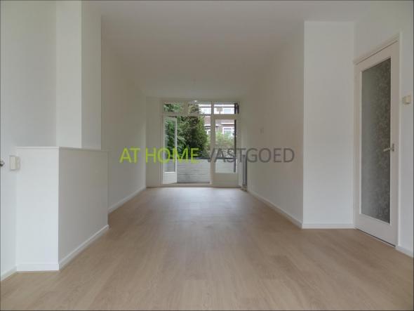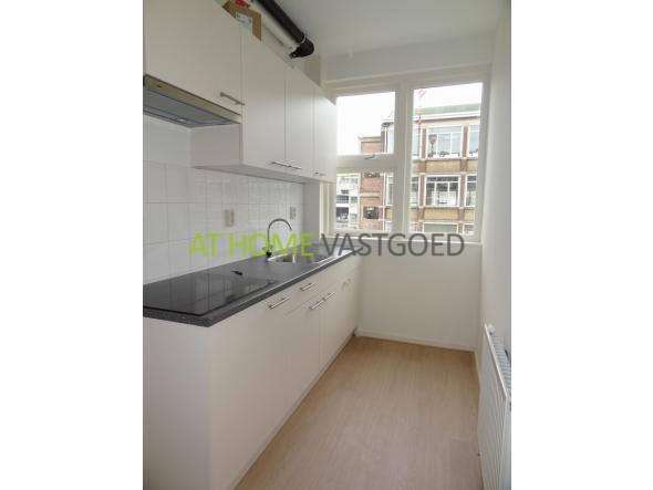 1e verdieping: entree appartement, hal welke toegang biedt tot alle vertrekken. Riante lichte woonkamer met openslaande deuren naar het balkon op het noordwesten. Nette keuken met keramische kookplaat, afzuigkap, koelkast, vriezer en aansluiting voor de wasmachine.