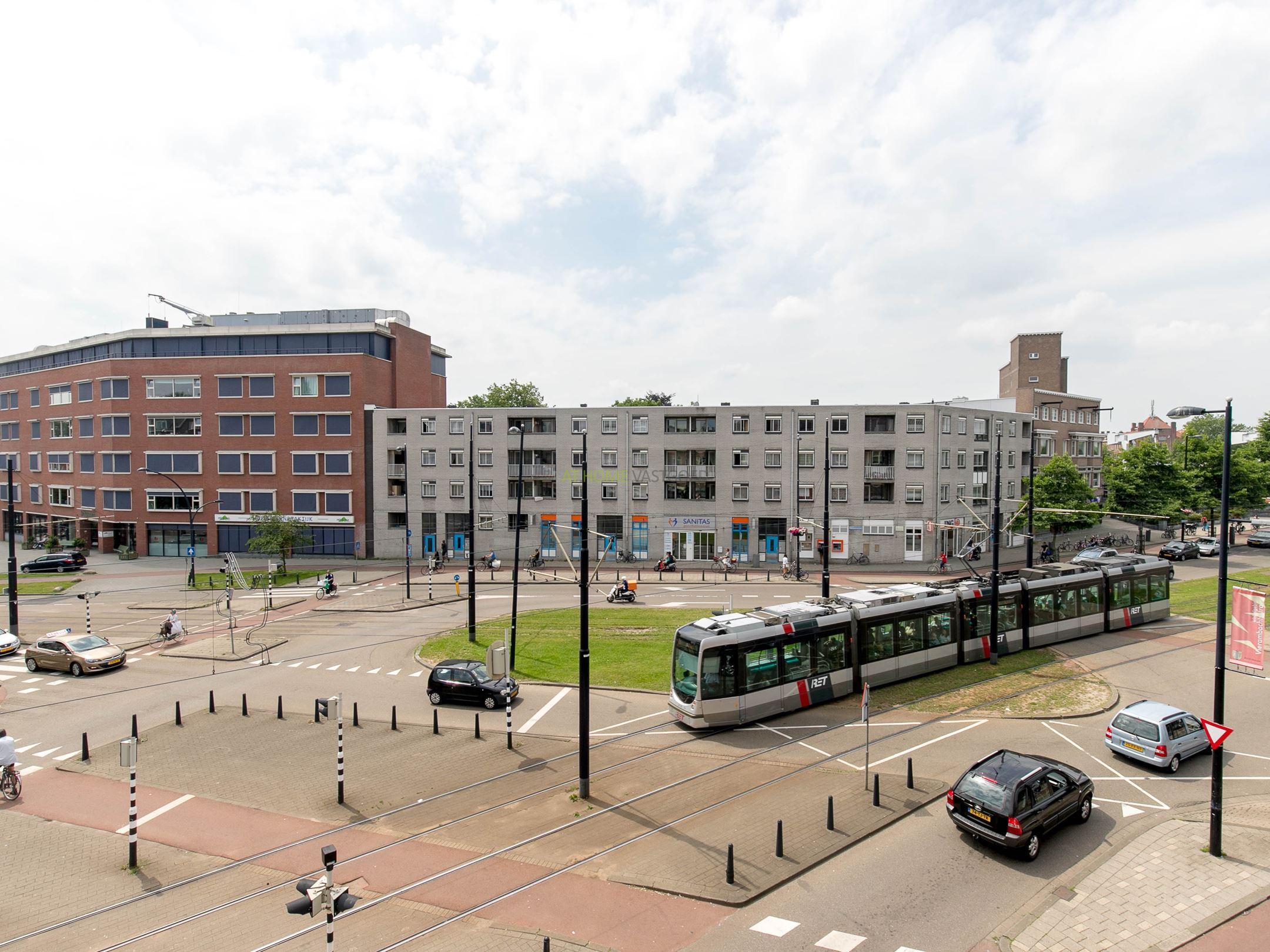 Het appartement ligt niet ver van het bruisende centrum van Rotterdam en kijkt direct uit op het gezellige Mathenesserplein.