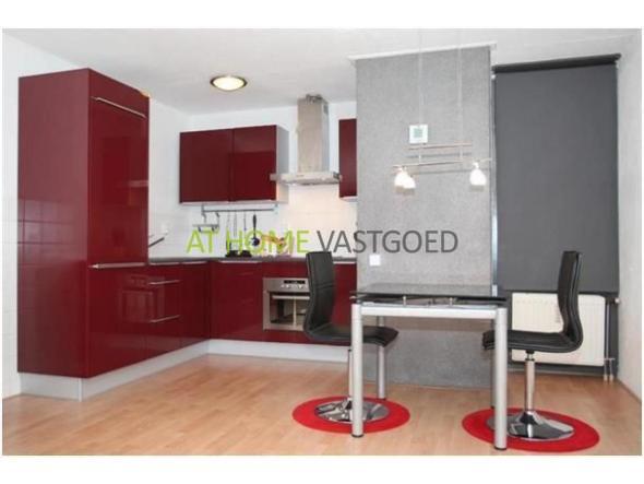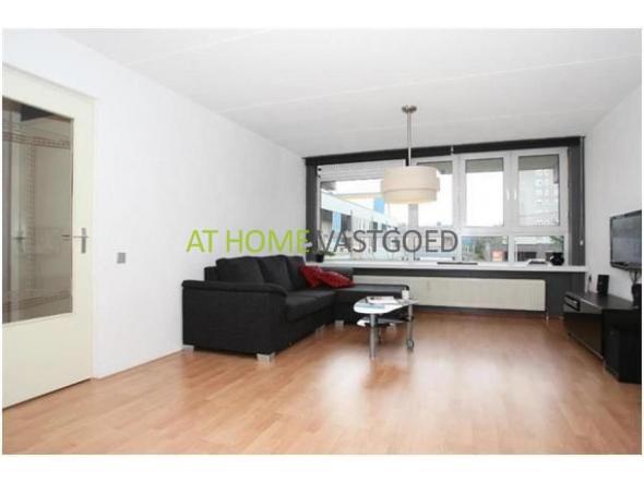 De woonkamer is voorzien van een laminaatvloer in lichte kleurstelling en heeft door de grote raampartij heerlijk lichtinval. De open keuken is voorzien van een modern hoogglans keukenblok uitgerust met een oven, koel- vriescombinatie en keramische kookplaat.