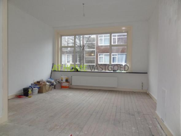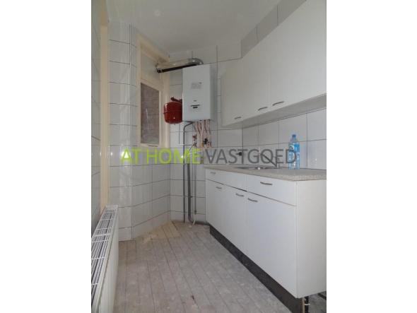 1e etage: entree, hal welke toegang geeft tot alle vertrekken, De lichte woonkamer geeft middels een schuifdeur toegang tot de slaapkamer aan de achterzijde. Slaapkamer met inbouwkast en toegang tot het balkon. Nette en nieuw betegelde badkamer met douche, thermostaatkraan en toilet,de keuken met net keukenblok is tevens nieuw betegeld en biedt ook toegang tot het balkon.