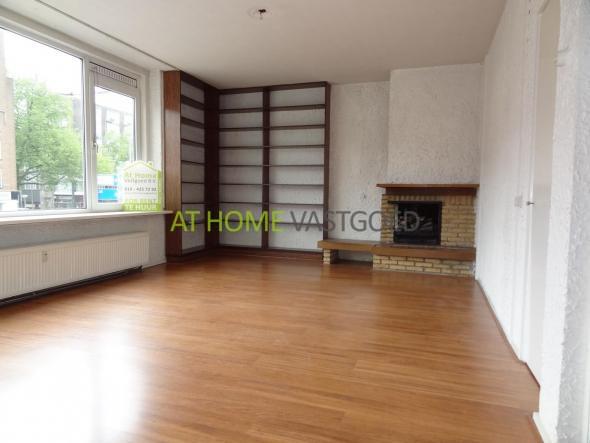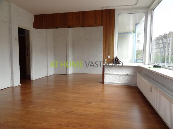 Eerste verdieping: entree, hal met garderobe kast en separaat toilet. Ruime en lichte woonkamer met open haard, zicht op de kruising Vondelweg / Goudsesingel, en toegang tot het eerste balkon aan de voorzijde. De keuken biedt toegang tot de badkamer en het tweede balkon/loggia aan de achterzijde. De badkamer is voorzien van douche, aansluiting voor de wasmachine en geeft toegang tot de slaapkamer, deze is gelegen aan de achterzijde heeft een vaste kast en biedt tevens toegang tot het balkon/loggia.