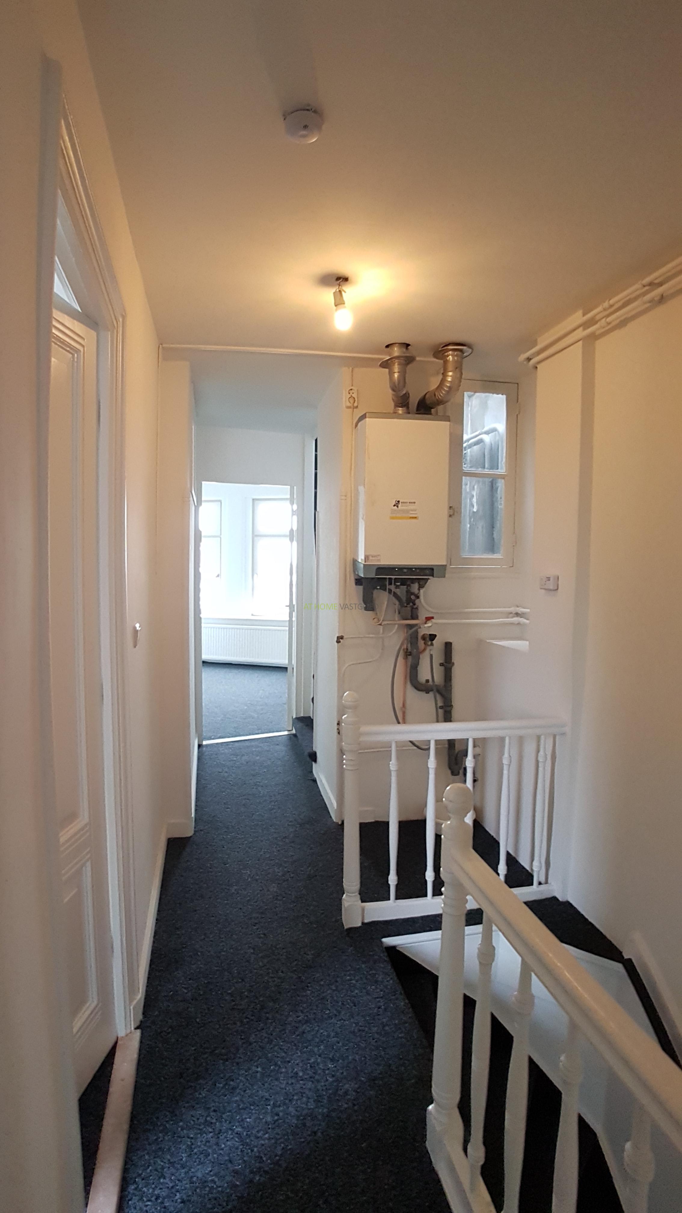 Overloop, separaat toilet, keuken, gezamenlijke woonkamer en de 1e slaapkamer welke beschikt over een balkon.