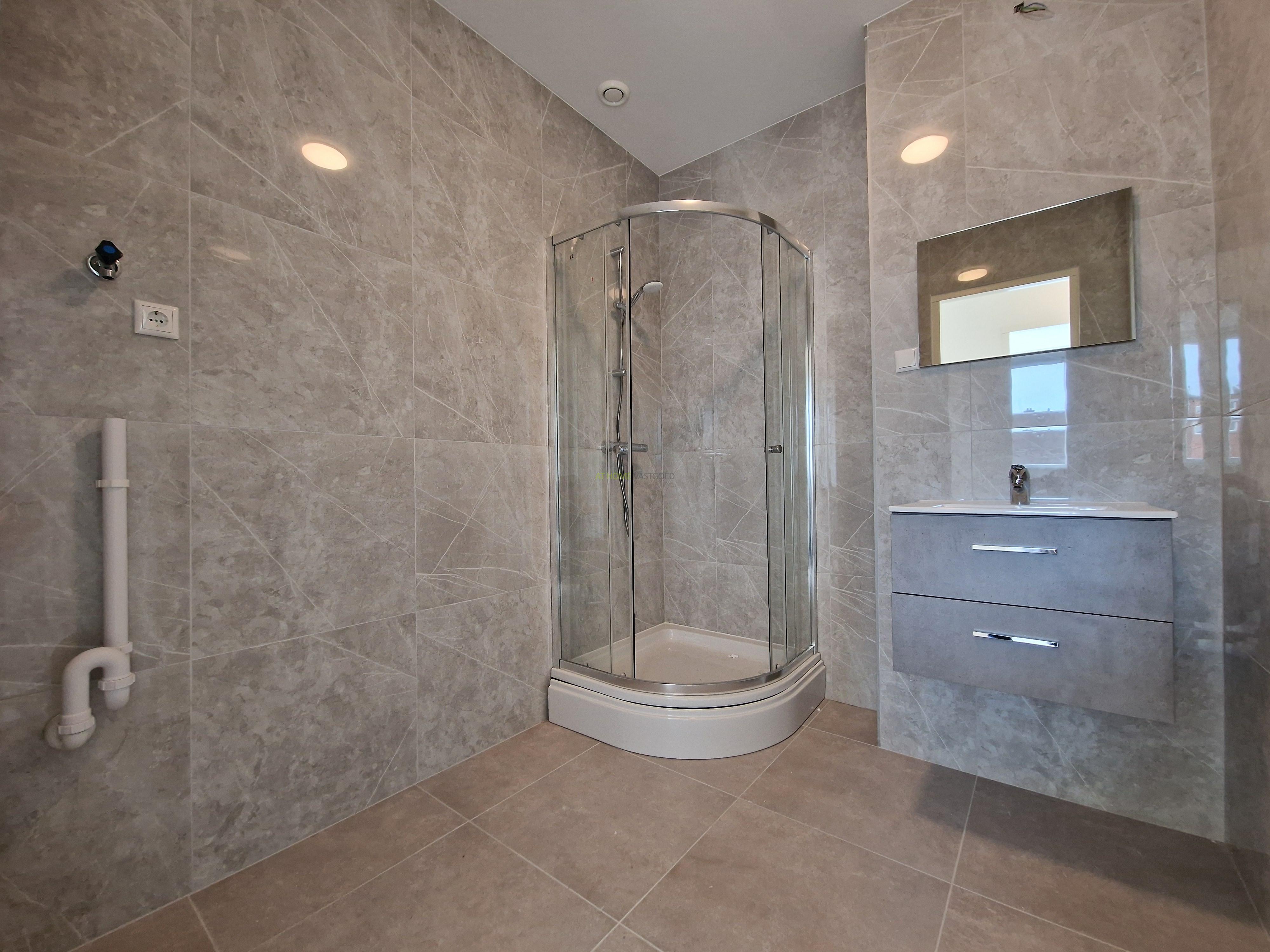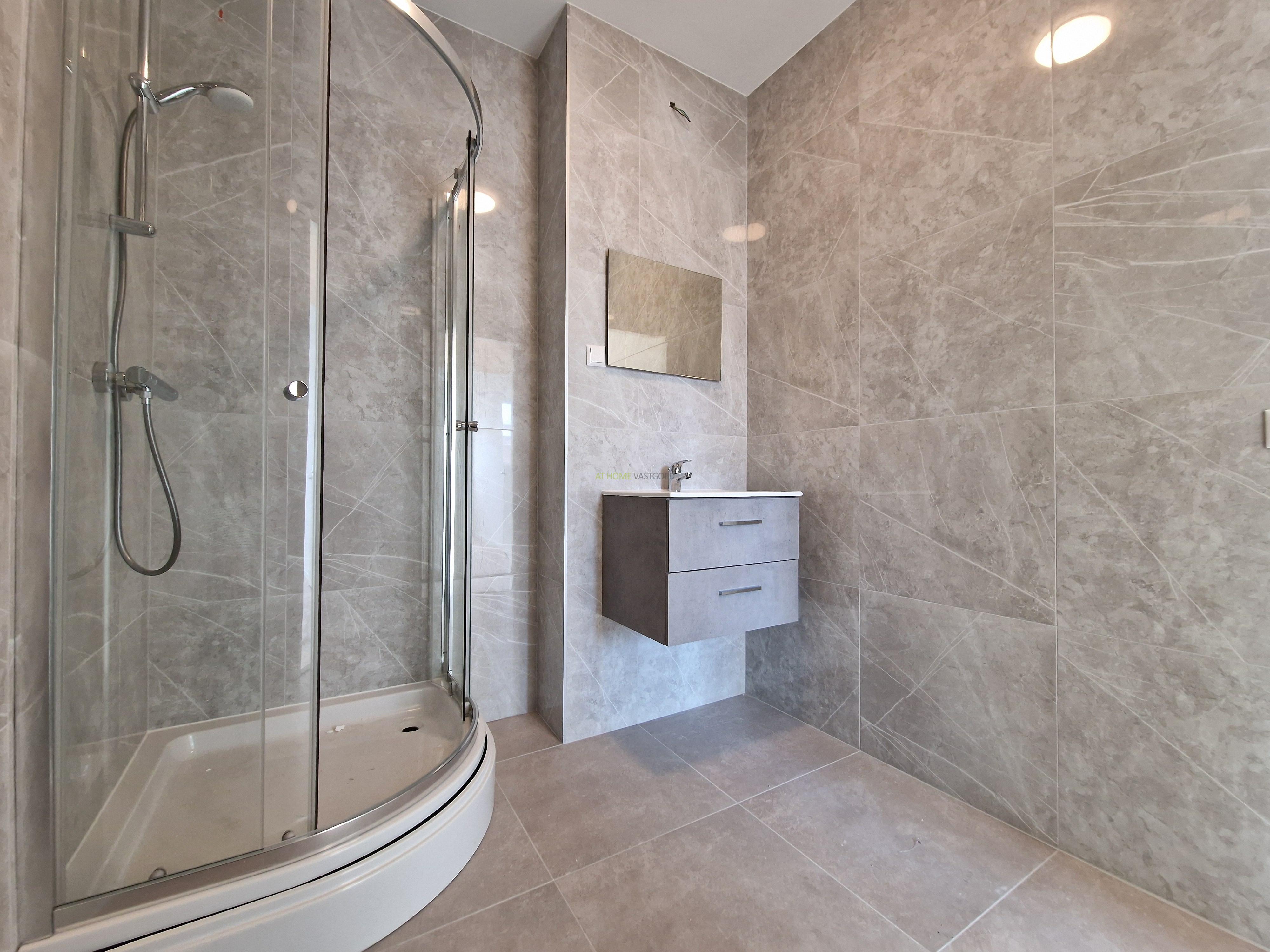 - Badkamer: Luxe badkamer met douchecabine wastafel met meubel.