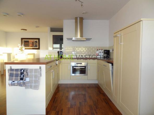 De moderne badkamer is voorzien ligbad, wastafelmeubel, designradiator en aparte douche. De slaapkamer is gelegen aan de koele achterzijde.