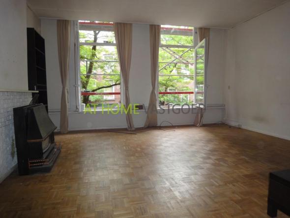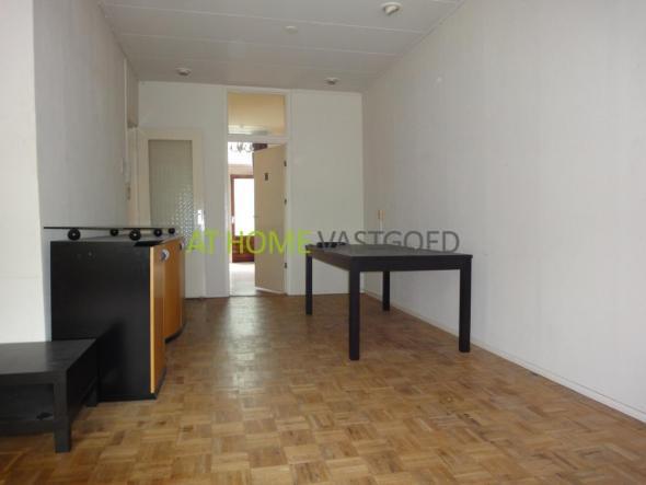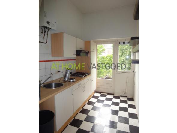 1e etage: entree appartement, hal, badkamer met douche en toilet. Nette keuken met koelkast/vriezer, gaskookplaat, afzuigkap, aansluiting voor wasmachine en toegang tot het gezamenlijke dakterras aan de achterzijde. Ruime L- vormige woonkamer (ca.35m2) met gaskachel. De slaapkamer is aan de achterzijde gelegen een geeft ook toegang tot het gezamenlijke terras.