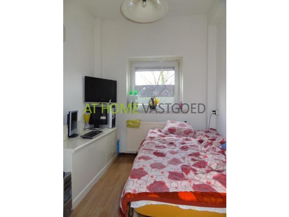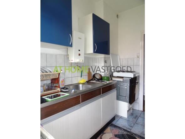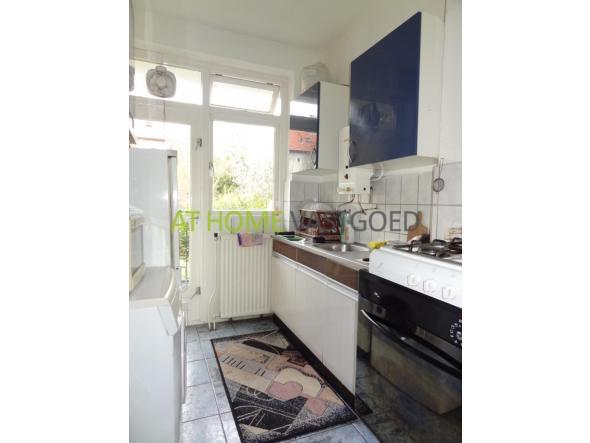 1e etage: entree, hal met toegang tot alle vertrekken, slaapkamer 2, ruime lichte woonkamer, slaapkamer 1 met grote inbouwkast en toegang tot balkon en tuin gelegen op het westen. Separaat toilet, badkamer met wastafel en douche. Aparte keuken welke ook toegang geeft tot het balkon en tuin.