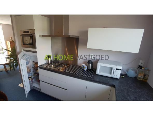 De woning is voorzien van een moderne open keuken, voorzien van een keukenblok in een L-opstelling, uitgerust met een 4-pits gaskookplaat, afzuigkap(zonder motor), combimagnetron, koelkast(met vriesvak), vaatwasser en luxe mengkraan.